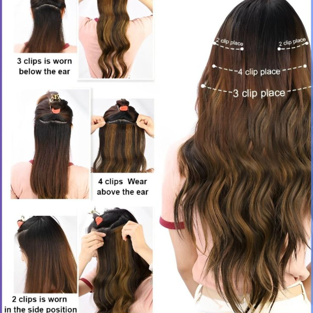 Our clip-on extensions are designed to blend naturally with your hair, giving you a flawless and elegant look for everyday wear or special occasions.