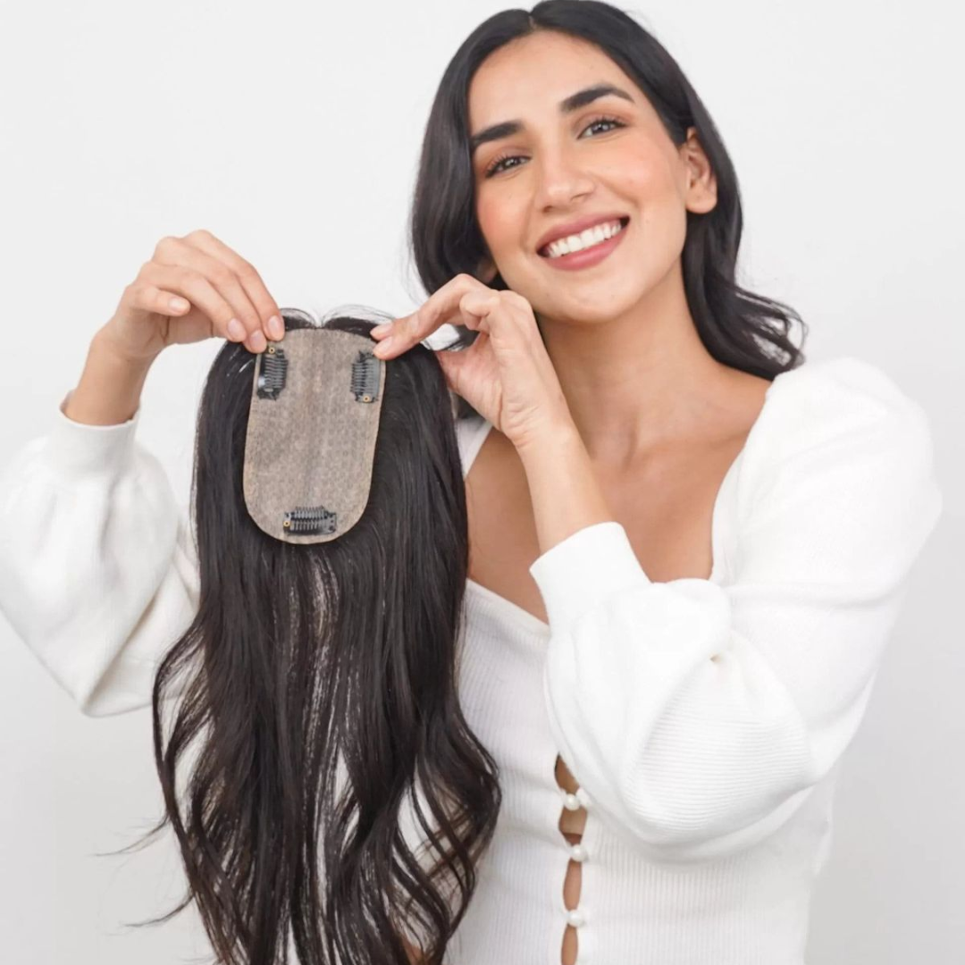 A hair topper is a partial hair solution that adds volume and covers thinning areas, especially on the top or crown. Unlike full wigs, toppers blend with your natural hair to give a subtle, natural enhancement.