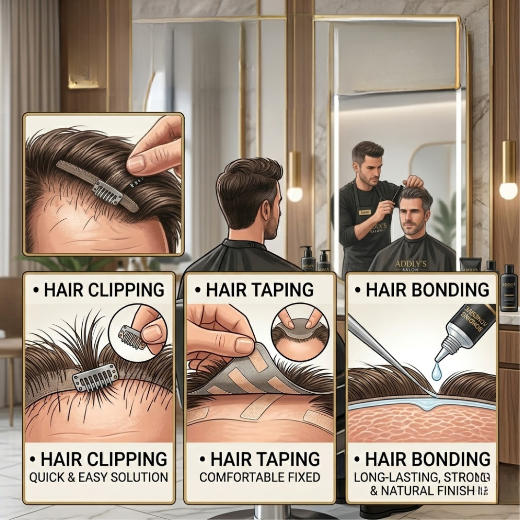 Hair loss or bald patches can affect your overall look, but with Addly’s Salon’s Men Hair Patch solutions, you can regain a full head of hair instantly. Our advanced hair patch techniques provide a natural, undetectable look without any surgery or pain.